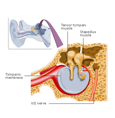 2 – The stapedius muscle. Without going into ridiculous detail, this muscle of the middle ear reflexively attempts to quell the screeching emanating from Sharapova by regulating how much the stapes bone (also known as the “stirrup” bone because, well it looks like one) vibrates. You can imagine this in the diagram below: