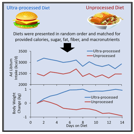 - We know from the above study that people on an ultra processed foods diet are likely to eat more than those on an unprocessed diet – despite both meals being equivalent in calories and nutrients. This past year, a new study featuring an ethnically diverse Brazilian population related eating highly processed foods to global cognitive decline. It seemed if > 20% of your daily calories derived from highly processed foods, one showed ~28% faster rate of global cognitive decline over the 5-10 years the group was followed.